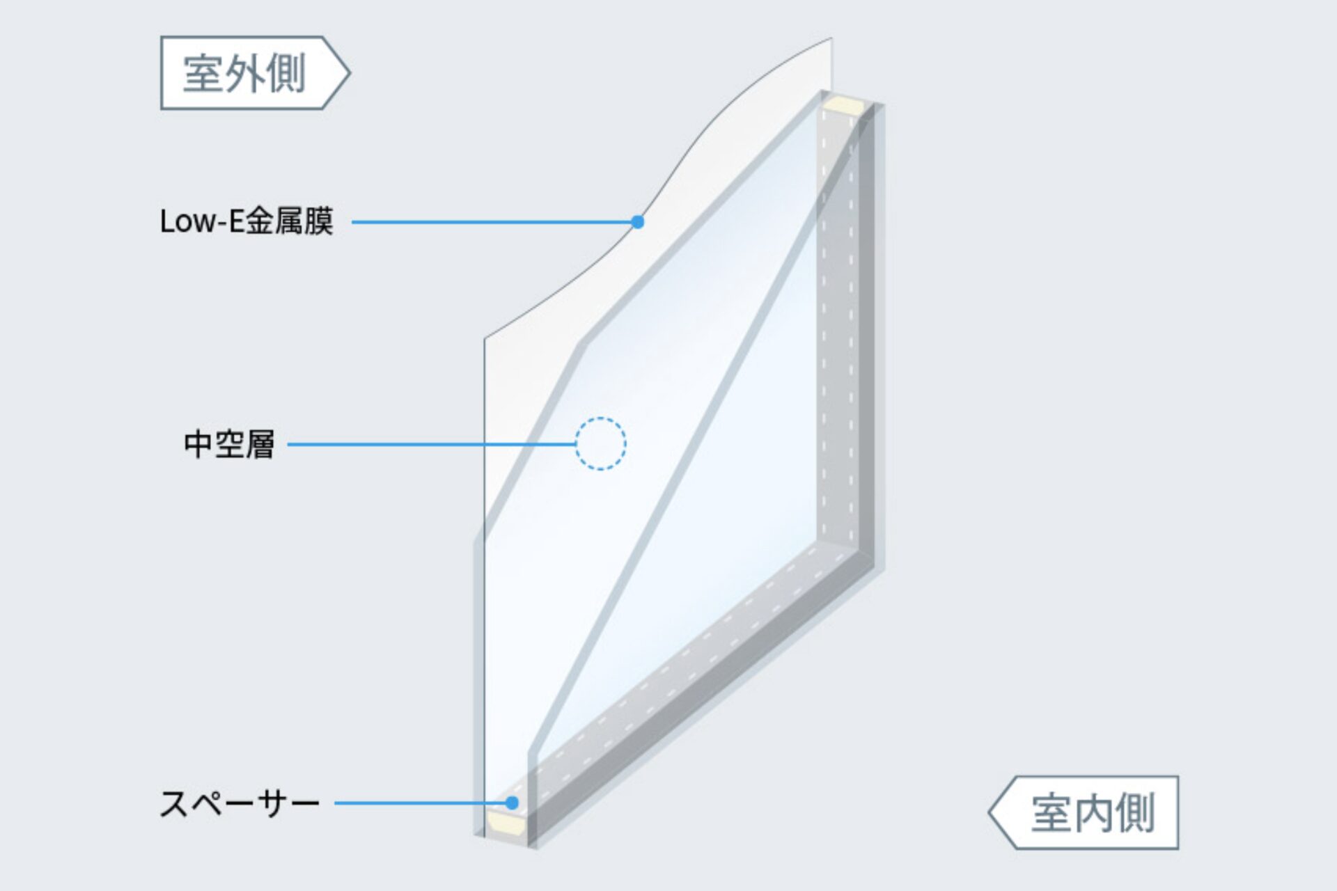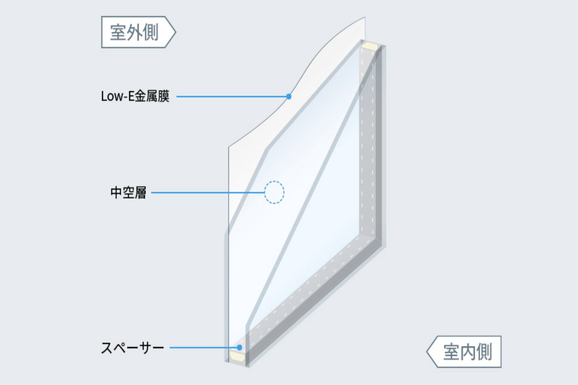 複層ガラスの中でも、Low-E(低放射)膜をコーティングしたタイプは、通常の複層ガラスの約2倍の断熱性能を持ちます。