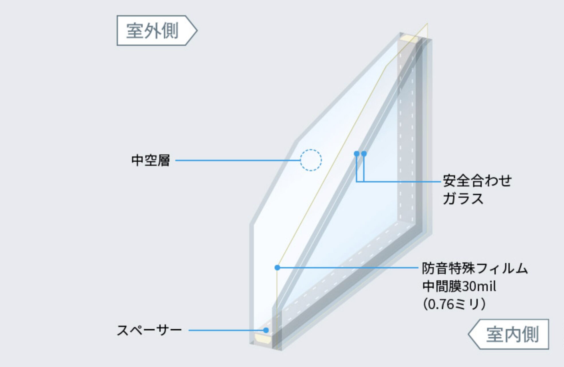 防音性能を重視する場合は、防音合わせガラスが効果的です。
